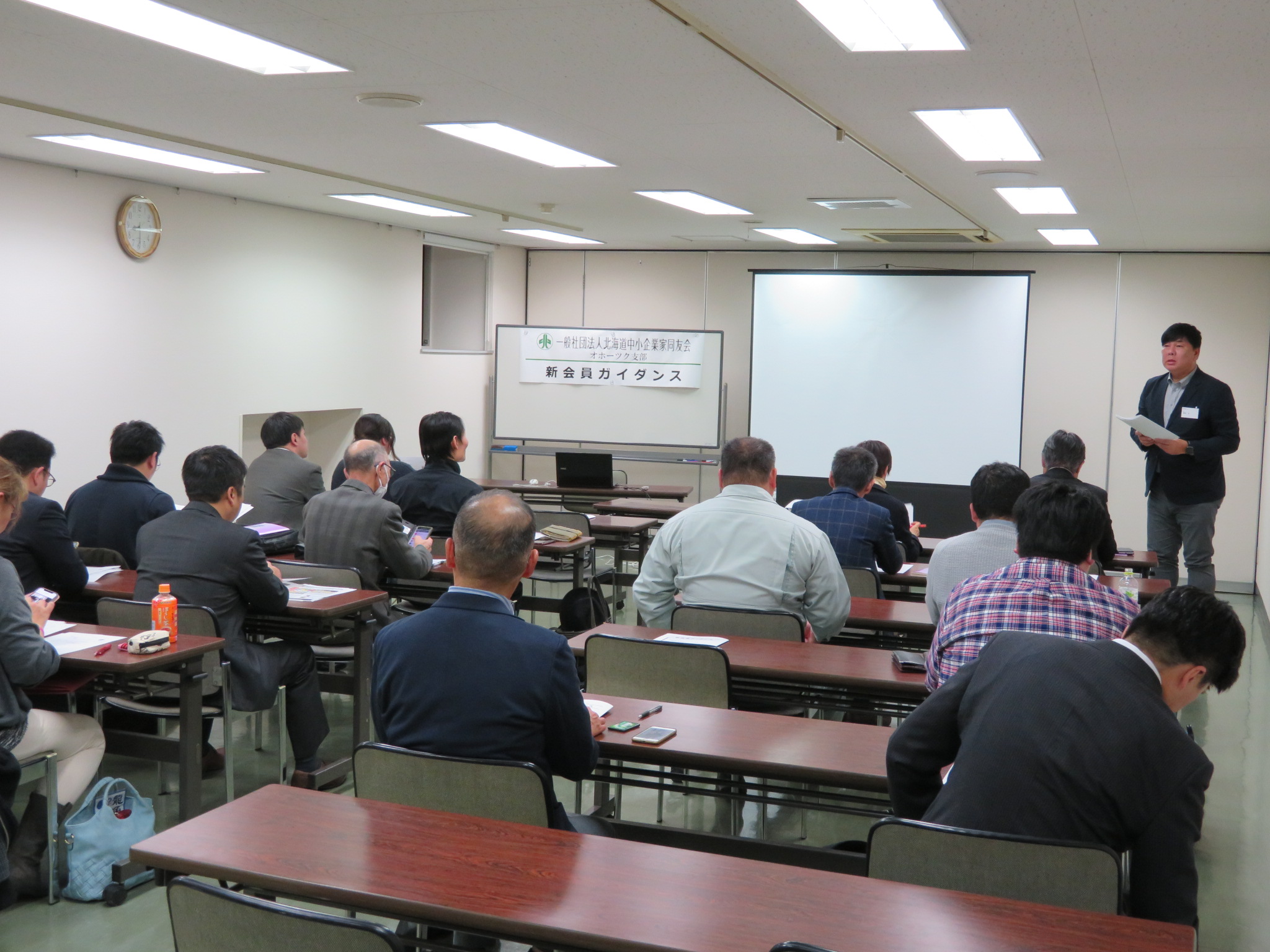 1/15に新会員ガイダンスを開催し、9名の新会員の皆様にご参加いただきました。同友会の理念や歴史背景を学び、オホーツク支部の組織・活動の説明をいたしました。その後の懇親会では自社・自己紹介を行い、新会員同士や役員との交流を行いました。