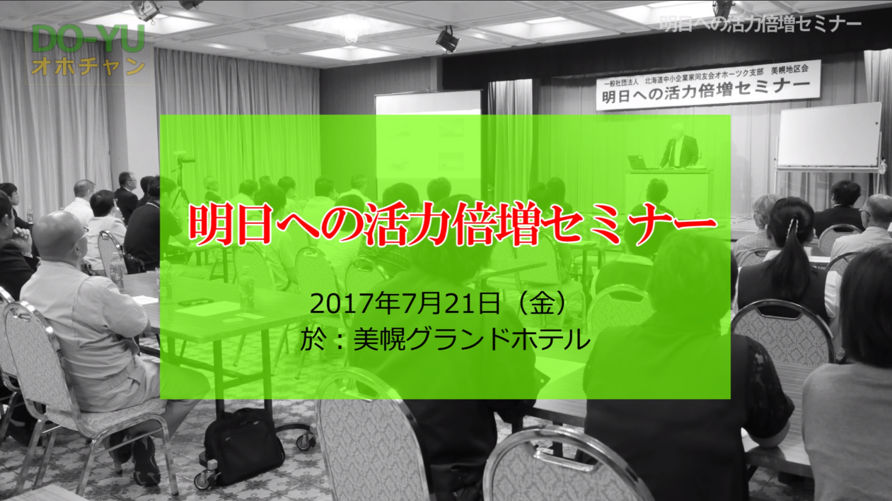 7月21日(金)、美幌地区会が16年ぶりの大型講演会として「明日への活力倍増セミナー」を開催し、北見や網走も含めて70名が参加しました。当日のダイジェスト映像を制作したのでご覧ください。